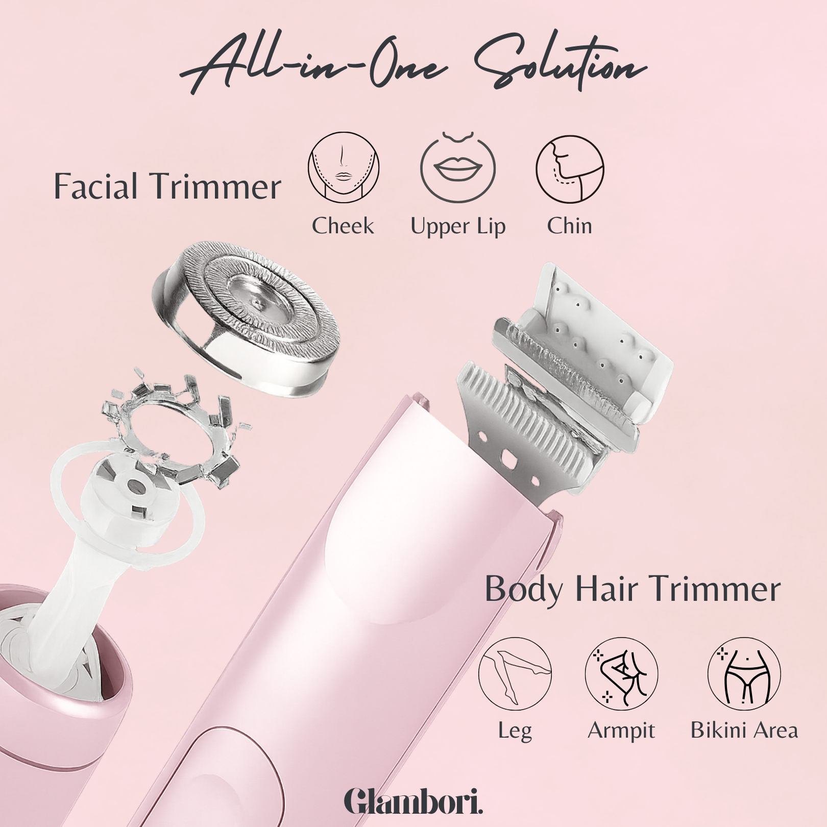 End the cycle of razor burn and ingrown hairs. The Glambori™ 2.0 Trimmer's advanced ceramic blades cut hair without touching your skin, eliminating irritation while delivering salon-smooth results from face to bikini line.